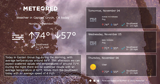 Weather Forecast Garden Grove Ca. Want to know what the weather is now? Live storm radar updates, local weather news, national weather maps.